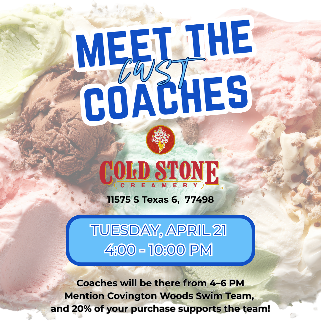 - April 21 - Meet the Coaches @ Coldstone Creamery